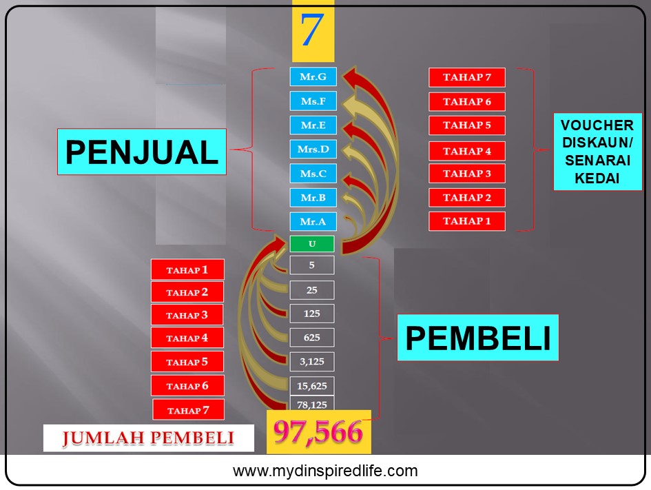 Tahap 7 - RM500 x 78,125 = RM39,062,500 terus masuk ke akaun kita.