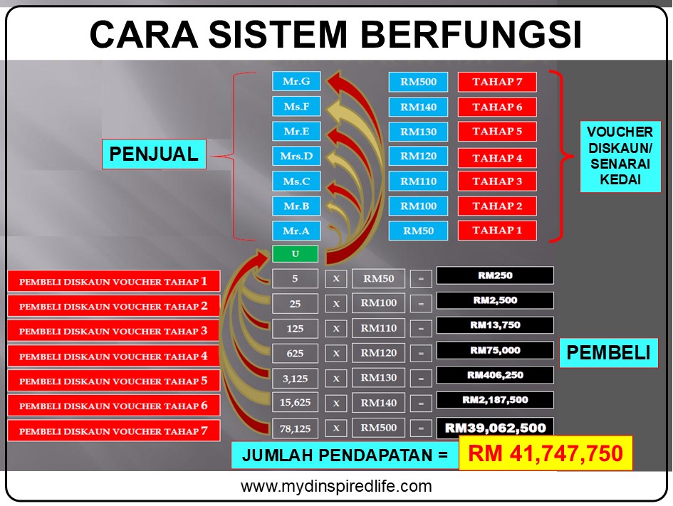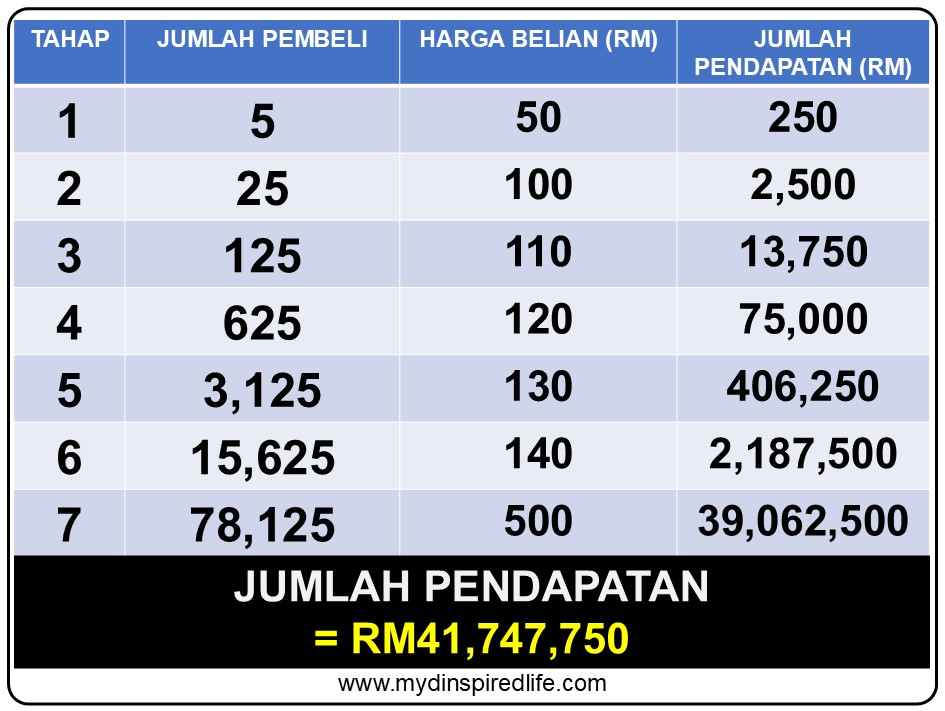 Tahap 5 - RM130 x 3,125 = RM406,250 terus masuk ke akaun kita.