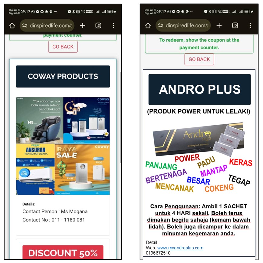 LANGKAH 2 - Sila buat bayaran sebanyak RM50 untuk pengaktifan akaun. Untuk lakukan bayaran tersebut sila hubungi penaja anda PALIL BIN MD TAP, nombor handphone 60196672510 untuk beliau bantu mengaktifkan akaun D'INSPIRED LIFE anda. Selepas akaun anda diaktifkan, anda dah boleh Login seperti biasa. Anda juga akan menerima Senarai Peniaga (Merchants) Tahap 1, yang menawarkan diskaun harga dalam bentuk Coupons.